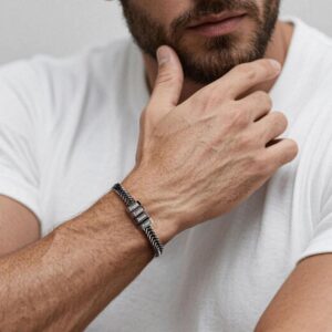 Amazon Hot Seller Stainless Steel Men’s Bracelet with Personalized Name Beads DIY Engravable Father’s Day Gift