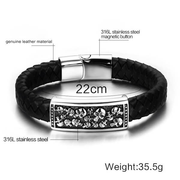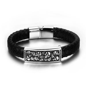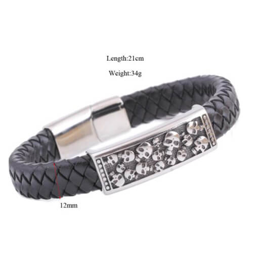 Cool Leather Detailed Skull Bracelet for Mens