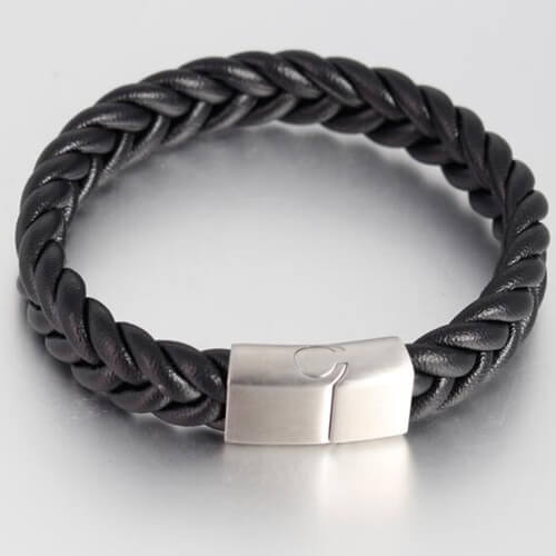 Cowhide Leather Braided Bangles Stainless Steel Clasp