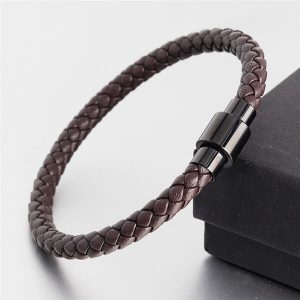 Leather Bracelet for Men Stainless Steel Magnetic Clasp-101