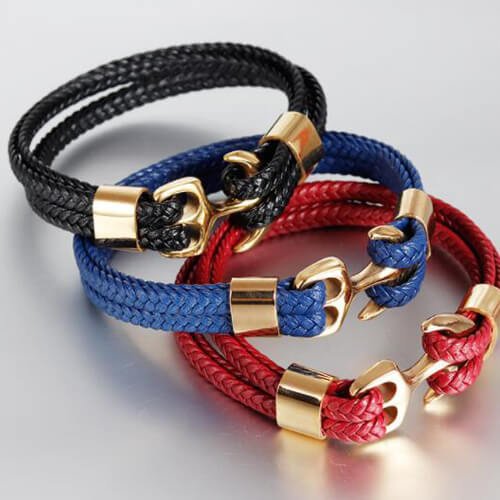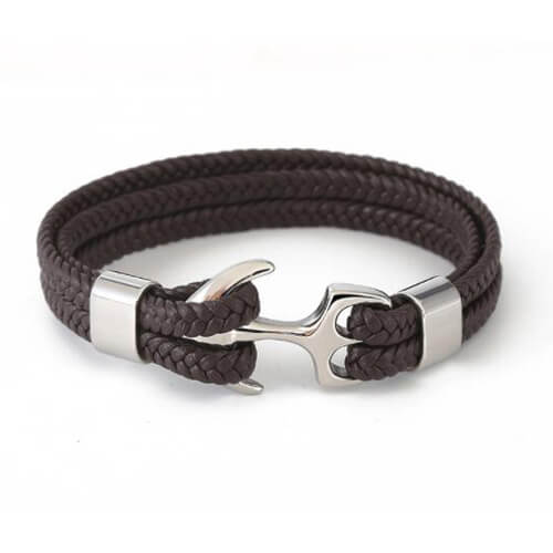 Mens Braided Leather Bracelet Anchor Clasp-07