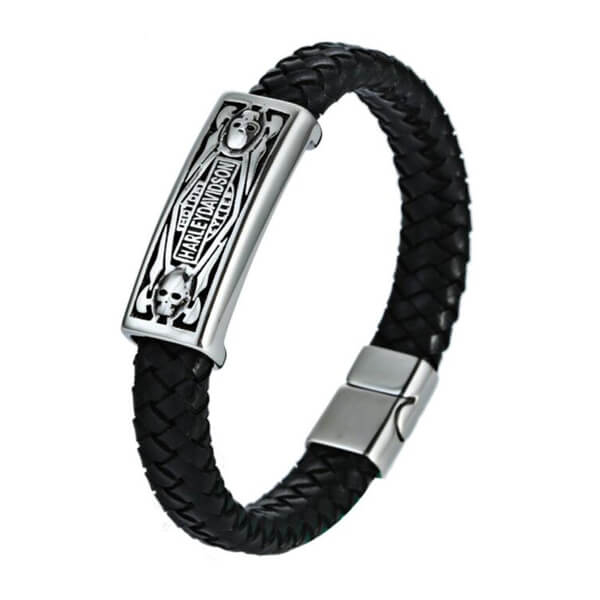 • Badass stainless steel and leather skull bracelets with wicked cool designs