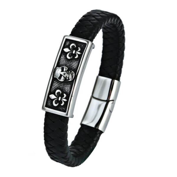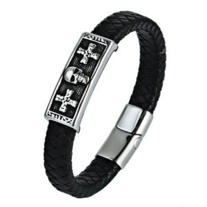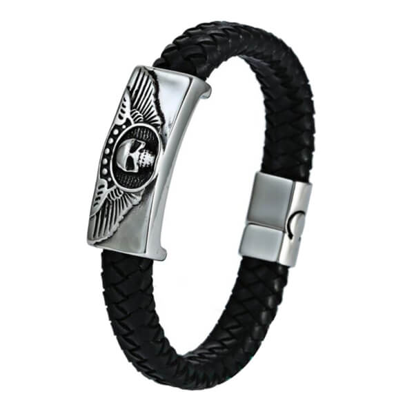 Men’s Masculine Designer Kull Leather Bracelet Jewelry