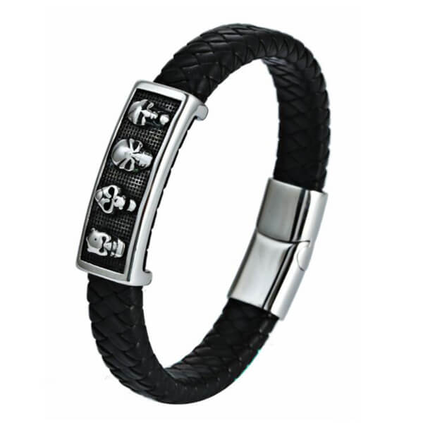 skull weave leather bracelet