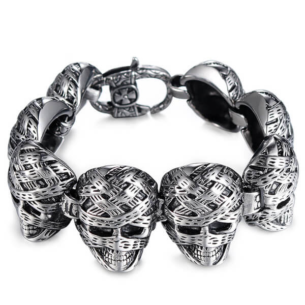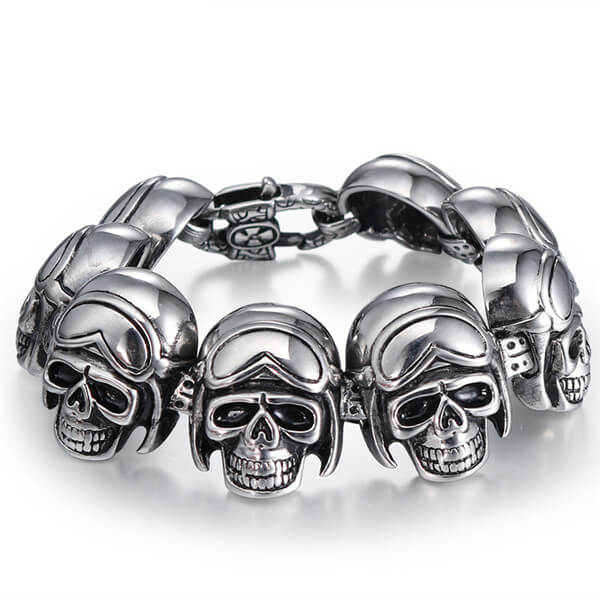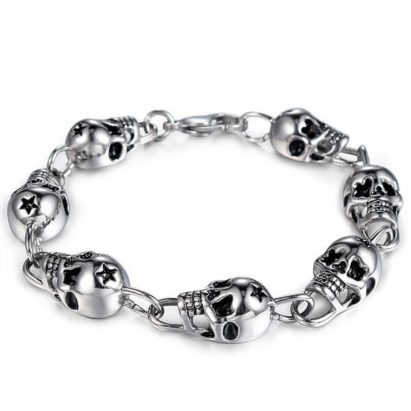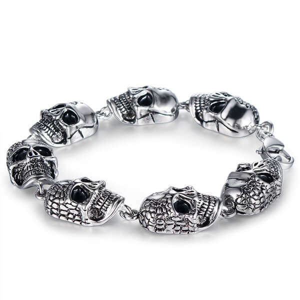 Supply charm unique and exclusive stainless steel skull bracelet bangles for mens