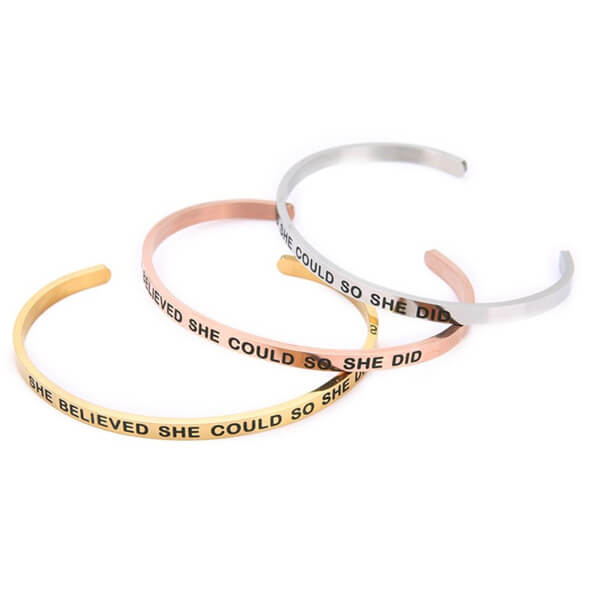 - The bracelet can be engraved with any phrase, inspiring words, coordinates, or symbols of your choice.